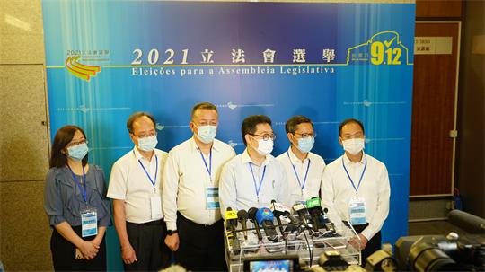 9月12日,選管會在公共行政大樓舉記者會。選管會主席會見傳媒,並向記者簡報投票情況。