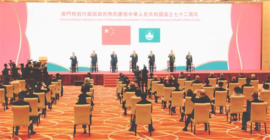 【本報訊】澳門特別行政區政府為慶祝中華人民共和國成立72周年,今(1)日先後在金蓮花廣場舉行國慶升旗儀式,及在中國與葡語國家商貿合作服務平台綜合體舉行國慶慶祝酒會。行政長官賀一誠在酒會致辭時表示,澳門特區一定牢記使命,把握機遇,不負中央厚望,不負社會期待,緊緊圍繞“一條主線”、“四個戰略定位”、“四項主要任務”,循序漸進落實橫琴粵澳深度合作區各項開放改革政策措施,與廣東省一道,切實做好合作開發橫琴這篇文章。