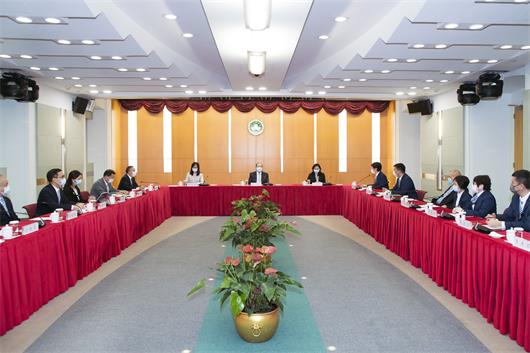 【本報訊】行政長官賀一誠12日在政府總部會見澳門街坊會聯合總會會長吳小麗等領導層一行,聽取該會對特區政府制定2022年財政年度施政報告的意見及建議,就疫情防控措施、房屋及民生等議題交換意見。