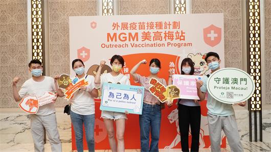 美高梅年內推出多項便利措施和宣傳,務求讓團隊成員透徹了解新冠疫苗資訊,鼓勵團隊接種疫苗。今年5月,美高梅成為首家邀請澳門衛生局醫護人員駐場舉辦「外展疫苗接種計劃」的綜合度假村企業,並特意請來衛生局代表向團隊成員講解疫苗須知。公司並先後為團隊成員及其家人舉辦共四次專場,提供方便貼心的疫苗接種服務,獲團隊成員踴躍參與,總共逾八千人次參與外展接種。與此同時,公司管理層成員亦以身作則,率先接種疫苗,更身體力行在公司內外宣傳講解,鼓勵更多團隊成員接種。