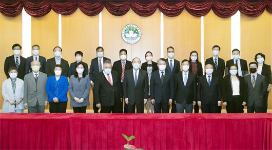 【本報訊】行政長官賀一誠25日在政府總部會見澳門中小企業協進會理事長區宗傑一行,就特區政府制定《2022年財政年度施政報告》聽取意見及建議,並就橫琴粵澳深度合作區建設、中小企支援措施,以及疫情防控工作等議題交換意見。