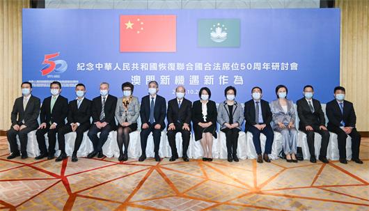 外交部駐澳門特派員公署與特區政府聯合舉辦 “紀念中華人民共和國恢復聯合國合法席位50周年:澳門新機遇新作為”研討會