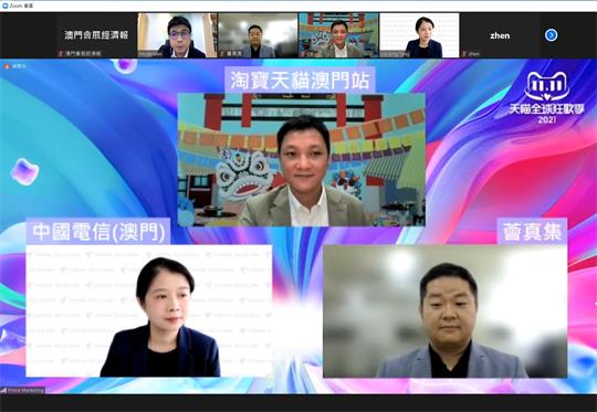 “天貓雙11全球狂歡季2021”淘寶天貓澳門站發佈會今(28)日以線上視訊舉行,天貓淘寶港澳事業部負責人陳子堅、中國電信(澳門)市場部總經理廖羽及澳門薈真集Gathering茶飲董事總經理施非凡透過在線視訊介紹今年“雙11”詳情。