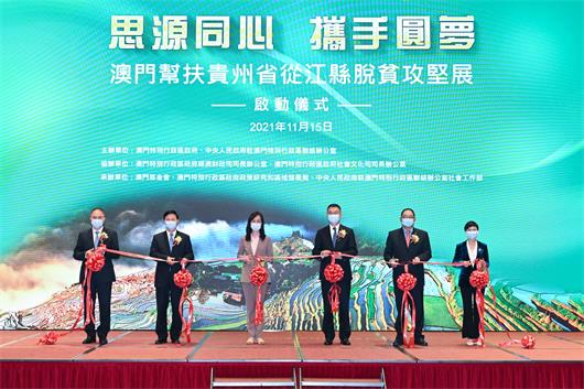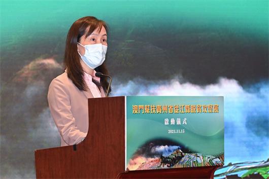 【本報訊】11月15日下午,澳門幫扶貴州省從江縣脫貧攻堅展啟動儀式在澳門大學N1樓多功能廳舉行。澳門特別行政區政府社會文化司司長歐陽瑜,中央政府駐澳門聯絡辦公室副主任姚堅,貴州省鄉村振興局局長穆嶸坤,澳門基金會主席吳志良,中央政府駐澳門聯絡辦公室副秘書長兼社工部部長黃華蓋,從江縣縣委常委、宣傳部部長、統戰部部長趙靈芝等嘉賓出席並共同主禮。