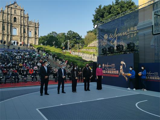 【本報訊】由體育局及澳門星娛樂製作有限公司主辦,永利渡假村(澳門)股份有限公司冠名贊助的FIBA 3×3大師賽永利盃大灣區資格賽(下稱:FIBA3×3大師賽)於24日正式展開。開幕禮於今日下午在大三巴舉行,體育局局長潘永權、澳門星娛樂製作有限公司行政總裁老傑龍、永利渡假村(澳門)股份有限公司總裁兼常務董事陳志玲出席開幕禮。