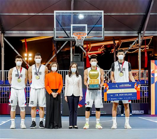 【本報訊】由體育局及澳門星娛樂製作有限公司主辦,中國澳門籃球總會及絕對三對三有限公司協辦,永利渡假村(澳門)股份有限公司冠名贊助的《FIBA 3x3 澳門大師賽 - 永利盃大灣區資格賽》,今日(28日)於永利皇宮舉行決賽,由東莞隊贏得冠軍,賽後由社會文化司司長歐陽瑜等頒發獎項。