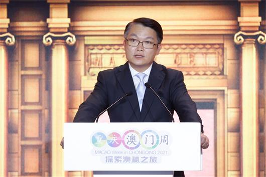重慶市人民政府副市長蔡允革致辭時表示,從嘉陵江上飛越而起的渝澳大橋,到雙方多領域合作共識的落地實施,渝澳雙方在經貿、交通、中醫藥、文化、旅遊、會展、教育、青少年交流、共同抗擊疫情等各個領域合作日趨活躍,取得了積極成效。我們將以“2021重慶澳門周”為契機,進一步加強重慶與澳門的交流合作,推動高層互訪、深化合作共識,搭建經貿平台、拓寬合作渠道,密切人文交流,促進民心相通,同時我們也將借助澳門作為中國與葡語國家商貿合作服務平台的優勢和作用,共同拓展與葡語系國家的經貿交流合作,實現雙方市場共拓,平台共建,開放共享。我們相信只要兩地人民肩並肩,心連心,渝澳合作的明天一定更加美好。