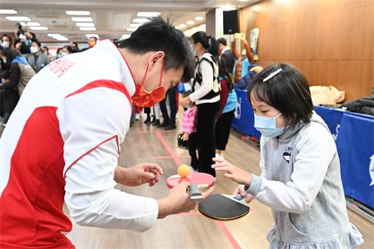代表團成員分成3批,於上午10時分別探訪工聯氹仔湖畔綜合服務中心、街總石排灣家庭及社區綜合服務中心、婦聯樂滿家庭服務中心。期間參觀不同社會服務機構的設施,與市民親切交流和互動,玩接力遊戲、對打乒乓球、搓湯圓、互動合唱、跳排排舞等,並與市民大合照,為廣大市民尤其是長者和小孩獻愛心與關懷,在場一睹精英運動員風采的市民均顯得相當興奮。