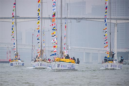 在首日比賽正式開始前,一眾參賽帆船隊伍於上午九時在嘉賓發施號令下,列隊由澳門漁人碼頭出發,展開海上巡遊之旅。船隊途經澳門科學館、觀音蓮花苑、嘉樂庇總督大橋,至澳門旅遊塔對開水域後折返,讓市民一睹大型帆船賽艇風采。巡遊過後,各帆船隊前往比賽場地進行賽事。