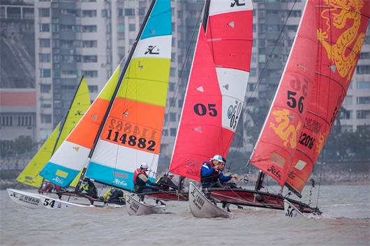 【本報訊】「2022美高梅澳門國際帆船賽」今日(14日)進行第二日賽事,經過連番激烈比拼,廣西北海老男孩夢之隊、華雲智慧健康隊及營口追風夏日隊分別在「澳門盃國際帆船賽」博納多First 40.7統一設計組、「粵港澳大灣區盃帆船賽」IRC組及「雙體帆船國際邀請賽」Hobie 16統一設計組獲得單日賽事冠軍。