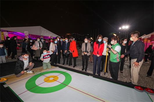 “冰墩墩”亮相西灣湖廣場 冰壺主題遊戲感受冬奧魅力
