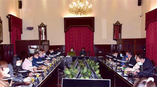 市政署市政管理委員會主席戴祖義、副主席柯嵐、委員吳秀虹,今(14)日與澳門供應商聯合會理事長李傑興、副會長王金源、莫兆基、楊淑英、澳門凍肉食品業商會創會會長梁和萍、理事長梁仕友、監事長陳楚南、澳門鮮魚行總會副會長余國華、兩南公司等商會及行業代表舉行會議。雙方就如何穩定經香港轉運至澳門的食品供應、強化落實防疫措施等交流意見。