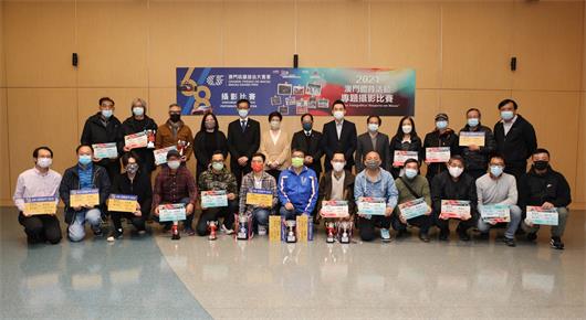 【已上傳】由體育局主辦,澳門攝影學會協辦的2021“澳門體育活動”專題攝影比賽,以及第68屆澳門格蘭披治大賽車攝影比賽均已順利完成。頒獎儀式於今日(2月17日)下午六時半在體育局西翼辦公樓地庫一樓會議室進行,出席的嘉賓包括:體育局副局長劉楚遠及林蓮嬌、澳門攝影學會會員大會副主席馬志信、澳門攝影學會會員名銜審議委員會主席林健璋。