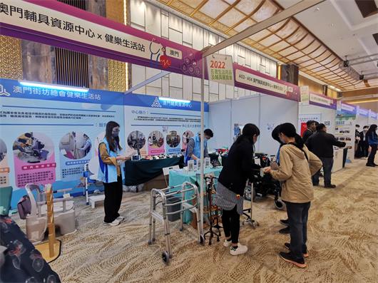 澳門輔具資源中心及健樂生活站是本次展覽會的參展商之一,均屬於澳門街坊會聯合總會(下稱“街總”)旗下。中心主任施敏介紹,澳門的長者、護老者、殘疾人士等其實在輔具上都有較大的需求,以及不太懂得挑選適合自己的輔具,甚至購買都有困難的,街總有見及此,配合特區政府的相關政策,在2019年11月成立了澳門輔具資源中心,亦是目前澳門唯一一間有關輔具的中心。現時中心主要有五大服務,分別是輔具宣傳及教育服務;輔具咨詢及評估服務;輔具展示及體驗服務;輔具租借服務;離院支援服務,除了租借服務需要用到的按金,五項服務均不收費。施主任續稱,期望為有需要人士提供輔具資訊,並協助他們選擇合適的輔具,使他們能獨立並且有尊嚴地生活,希望通過此次展會,可以讓澳門市民多點認識輔具。市民周小姐在輔具資源中心的展位現場用150元購買了一個四腳拐給她家中80歲的父親,她是特意來到展會更換的,因為她認為中心的東西更加實惠。