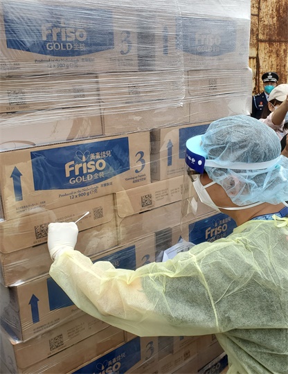 同在碼頭現場的市政署食品安全廳廳長張桂達告訴記者,市政署現時每周平均消毒7萬箱凍肉及3萬箱水果的外包裝箱,每日抽樣檢測量已上調至近500個,2022年截至3月15日抽取約17,800個食品及環境樣本,包括冷鏈食品,水果,受檢疫食品及環境樣本。同時,持續加強巡查機場、碼頭、冷凍庫、冷鏈食品加工及零售場所、果欄及水果商戶等,和業界共同嚴守冷鏈食品防疫線。他還說,冷鏈食品及進口水果須透過追溯系統申報記錄每天出貨及退貨的下游公司、貨品數量,以便溯源追查貨物流向。而逾3,300名冷鏈食品人員須48小時一檢,逾900名街市魚販、漁獲進口及零售相關人員須至少7日一檢,全部須持綠碼上班。