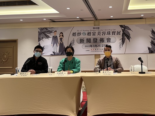 【本報訊】由藝嘉國際有限公司主辦的「第45屆婚紗婚宴美容珠寶展」於3月25至27日一連三日假澳門漁人碼頭會議展覽中心盛大舉行。為配合澳門特區政府防疫管控,主辦方嚴格遵守防疫指引,務求讓所有準新人能有一個安全舒適的觀展體驗。是次展覽參展商戶逼近40家,當中包括澳門多間星級酒店婚宴酒席、婚紗攝影、珠寶首飾、場地佈置及情侶對戒等優惠商家。除此以外,為推動文化創意產業適度多元發展,主辦方特邀文化創意領域商戶參展,加深廣大市民對文創產業的認識。