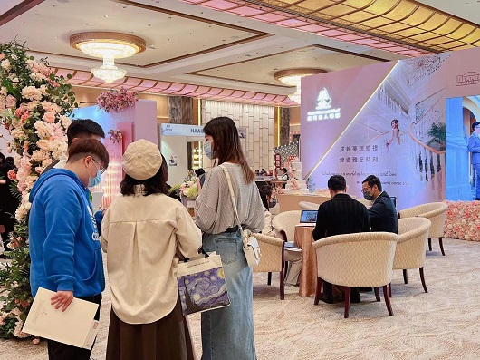 「第45屆婚紗婚宴美容珠寶展」昨(25)日於澳門漁人碼頭開幕,本次展覽有將近40家本地商戶參展,當中包括婚禮策劃、星級婚宴、婚紗攝影、場地佈置、珠寶首飾、婚車租賃、喜餅回禮、家庭生活等優惠商家,橫跨週末,一連三日的展覽滿足各位準新人的婚禮所需。主辦方負責人何嘉靜表示,感謝特區政府推廣“旅遊+會展”跨界融合政策對業界的高效支援,期望透過本次展覽為本地中小企及業界打下強心針。