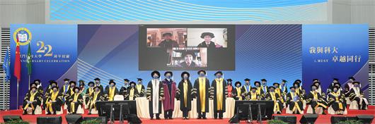 李行偉校長在致辭中首先向2021年榮譽博士學位獲得者致以熱烈祝賀,並表示,大學將大灣區建設納入了新的五年戰略規劃,把「立足粵港澳大灣區」作為工作的重中之重。為培養新一代具有紮實的科學基礎訓練且具有跨學科思維的工程師,澳科大組建了一個全新的創新工程學院,以促進跨學科研究,並提供一種適應未來創新經濟需要的教育。新學院將由計算機科學與工程學院、工程科學系、材料科學與工程系和環境科學與工程系組成。