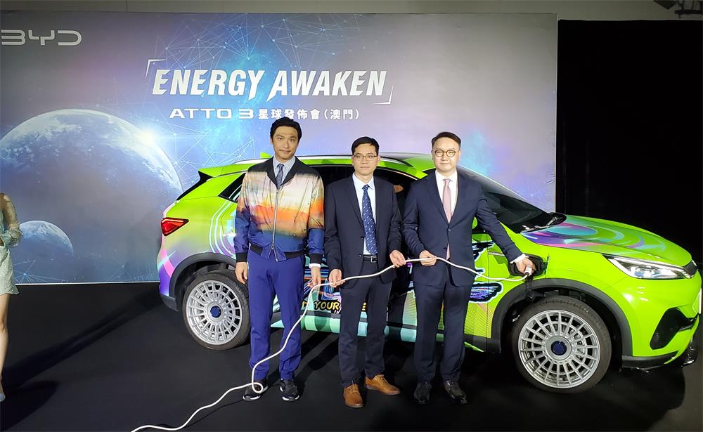 【本報訊】比亞迪攜手澳門合作夥伴合迪新能源汽車有限公司(下稱“合迪新能源”)今(7)日假新濠影匯舉行“ENERGY AWAKEN”ATTO 3星球發佈會。合迪新能源聯合創始人廖沛霖會上表示,看好澳門電動車市場,ATTO3車型還是內地品牌中首款具備右軚電動車,有信心今年銷售額超二、三百輛。
