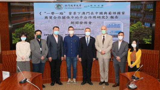 【本報訊】為預祝中國—葡語國家經貿合作論壇(澳門)部長級特別會議成功舉辦,以及慶祝澳門城市大學41周年校慶,由城大葡語國家研究院、澳門“一帶一路”研究中心、澳門社會經濟發展研究中心聯合主辦,澳門基金會贊助的《“一帶一路”背景下澳門在中國與葡語國家商貿合作關係中的平台作用研究》報告新聞發佈會8日上午10時在城大氹仔校區召開。