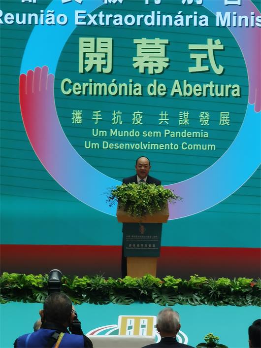 賀一誠在“中國—葡語國家經貿合作論壇(澳門)部長級特別會議”開幕式致辭