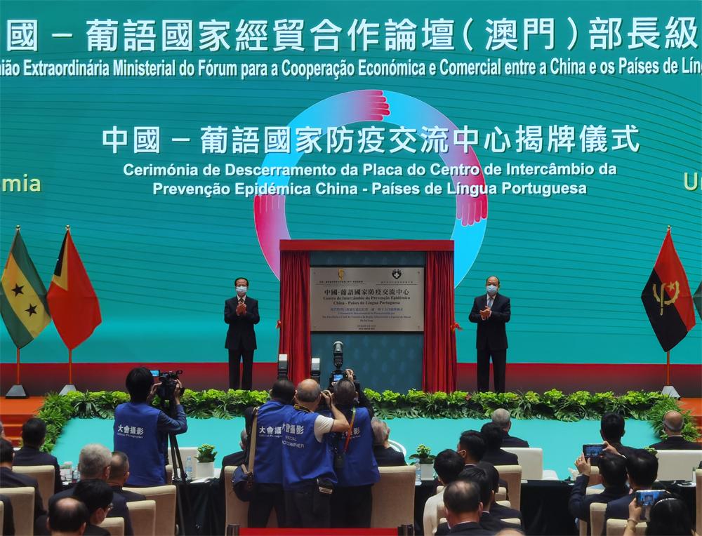 【本報訊】中國一葡語國家經貿合作論壇(澳門)部長級特別會議開幕式及“中國一葡語國家防疫交流中心”揭牌儀式今(10)日下午假中國與葡語國家商貿合作服務平台綜合體舉行。大會以“攜手抗疫、共謀發展”為主題,藉著會議舉辦的契機,同日在澳門正式揭牌成立中國一葡語國家防疫交流中心。