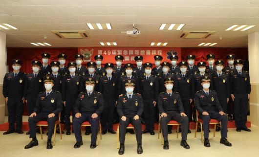 【本報訊】於2022年4月14日下午,消防局在黑沙環消防學校舉行《第49屆緊急護理證書課程》結業儀式,一共有24位消防員修讀課程,在經過約三個月的專業培訓,並通過考核後,正式成為具備院前緊急護理專業資格的救護員。儀式由消防局梁毓森局長擔任主禮嘉賓,並致詞勉勵結業學員須時刻認真履行救急扶危之責任,盡忠職守,為市民提供專業的救護服務。