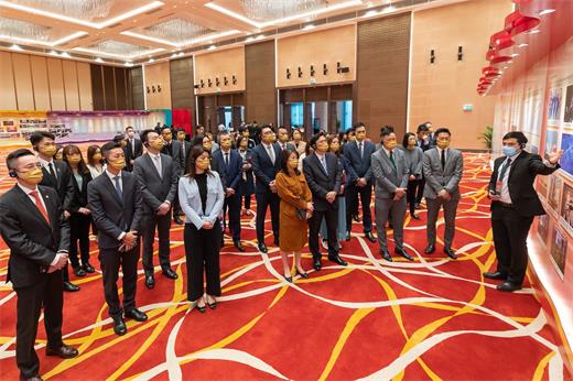 【本報訊】金沙中國有限公司總裁王英偉博士周三帶領管理層成員、來自不同部門的員工及部分正在公司實習的大專院校學生前往中國與葡語國家商務合作服務平台綜合體,參觀2022年“全民國家安全教育展”,作為金沙中國職業素養培訓系列的一環。