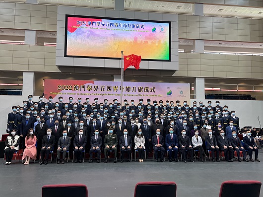【本報訊】為了弘揚五四精神,培養本澳學生愛國愛澳情懷,教青局今(4)晨舉辦“澳門學界五四青年節升旗儀式”。本澳學生代表,各界青年代表,政府官員出席,次升旗儀式約400人參與。今年的學界升旗隊由33間非高等教育學校組成,共105個學生。