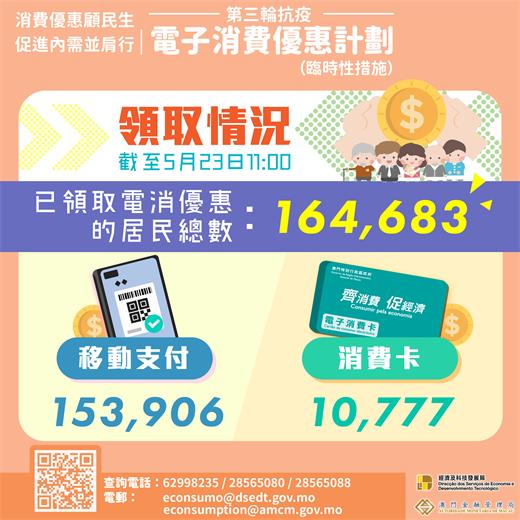 截至早上11時,已有10,777名居民完成消費卡拍卡加值,153,906名居民收到移動支付自動注資。