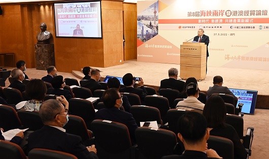 【本報訊】中國工業經濟聯合會、台灣工商協進會、香港中華總商會、澳門中華總商會於昨(27)日共同主辦了「第八屆海峽兩岸暨港澳經貿論壇」,藉此促進海峽兩岸和港澳地區經貿合作與交流。本次會議以「新時代、新經濟、共建產業新模式」為主題,採用線下線上相結合形式舉辦,在北京、台灣、香港、澳門各設會場。中國工業經濟聯合會會長李毅中,台灣工商協進會理事長林伯豐、香港中華總商會會長袁武、澳門中華總商會會長崔世昌出席會議並致辭。