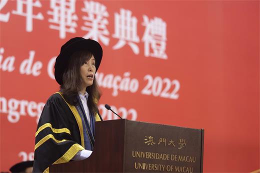 宋永華致辭時指,作為大學的管理者,自己必須在前所未有的困難面前承擔起責任,盡全力在疫情下保障師生員工身心健康,讓大學教研工作盡量順利運行。同時配合國家和特區發展所需,持續完善人才培養體系,不斷創新適應市場需求的科研創新及成果轉化機制,全面加強大學的社會服務,合理高效地利用資源,積極推進澳大向前發展。這些努力得到全校師生的理解、響應、參與和支持,大學各項具體工作從未像現在這樣讓大家同氣相求、攜手並肩、攻堅克難。“這一份眾志成城、戳力同心,令大學保持著良好的發展勢頭、國際聲譽不斷提升,也讓我對澳門大學未來的發展更有信心!”此外,宋校長還向學生提出三點想法:第一,希望他們心懷正向,“疫”境自強。第二,希望他們勇於擔當,甘於奉獻,拒絕“躺平”。第三,希望他們拓寬視野,放大格局。