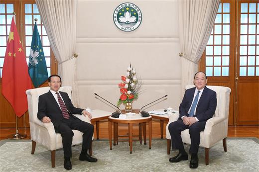傅自應先生首先向行政長官及其領導的團隊表達由衷致謝,中聯辦與特區政府工作關係密切,彼此之間互相信任。他表示,時光荏苒,在澳門期間,特區政府完成了包括澳門特別行政區第五任行政長官選舉、慶祝澳門回歸祖國20周年、澳門特別行政區第七屆立法會選舉等多項大事。過去兩年多,行政長官帶領團隊應對新冠疫情防控,同時推出卓有成效的保就業、穩經濟、顧民生一系列措施。特區政府也致力推動維護國家安全工作,領導澳門廣大社團推行愛國愛澳教育等。這些年,在中央支持下,澳門特區政通人和、社會穩定,中央對此也給予高度肯定。