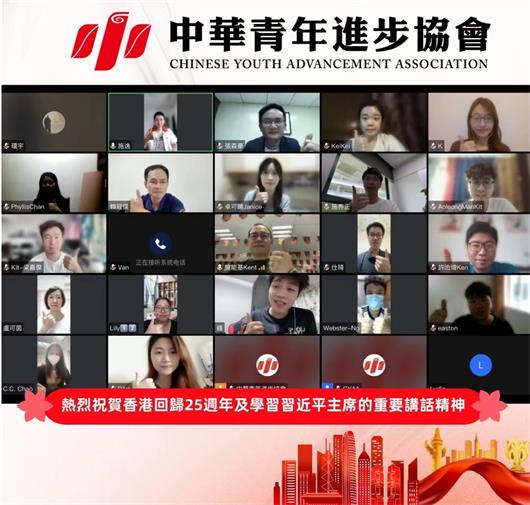【本報訊】習近平主席在出席慶祝香港回歸祖國25周年大會暨香港特別行政區第六屆政府就職典禮上發表重要講話。中華青年進步協會會長張森華、理事長許治煒聯同一眾理監事及會員在線上觀看典禮,藉此向香港回歸表達熱烈的祝賀,以及學習習近平主席的重要講話精神。