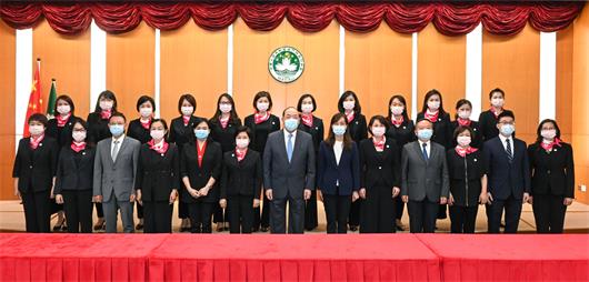 出席會見的還包括行政長官辦公室主任許麗芳、政策研究和區域發展局局長張作文等,以及澳門婦女聯合總會多名領導層成員。