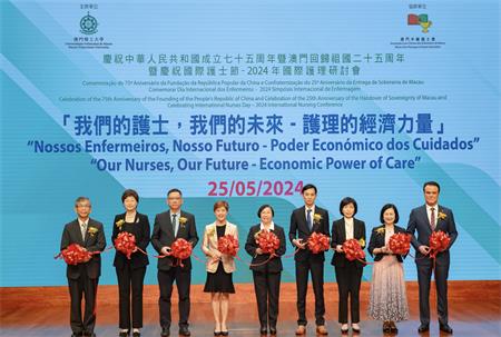 【本報訊】為慶祝中華人民共和國成立七十五周年暨澳門回歸祖國二十五周年,由澳門理工大學健康科學及體育學院主辦,澳門中葡護士會協辦,“慶祝國際護士節”之“我們的護士,我們的未來—護理的經濟力量”2024國際護理研討會於澳理大禮堂舉行。來自葡萄牙、內地與港澳地區的護理專家學者、護理團體領導及臨床護理領域之專家齊聚澳門,分享其寶貴經驗、研究成果和專業發展,醫療業界人士及師生三百多人出席。