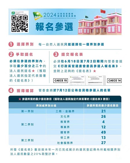 【本報訊】行政長官選舉委員會委員選舉將於8月11日舉行。有意參選人士可於明天(6月18日)至7月2日期間向行政長官選舉管理委員會報名。