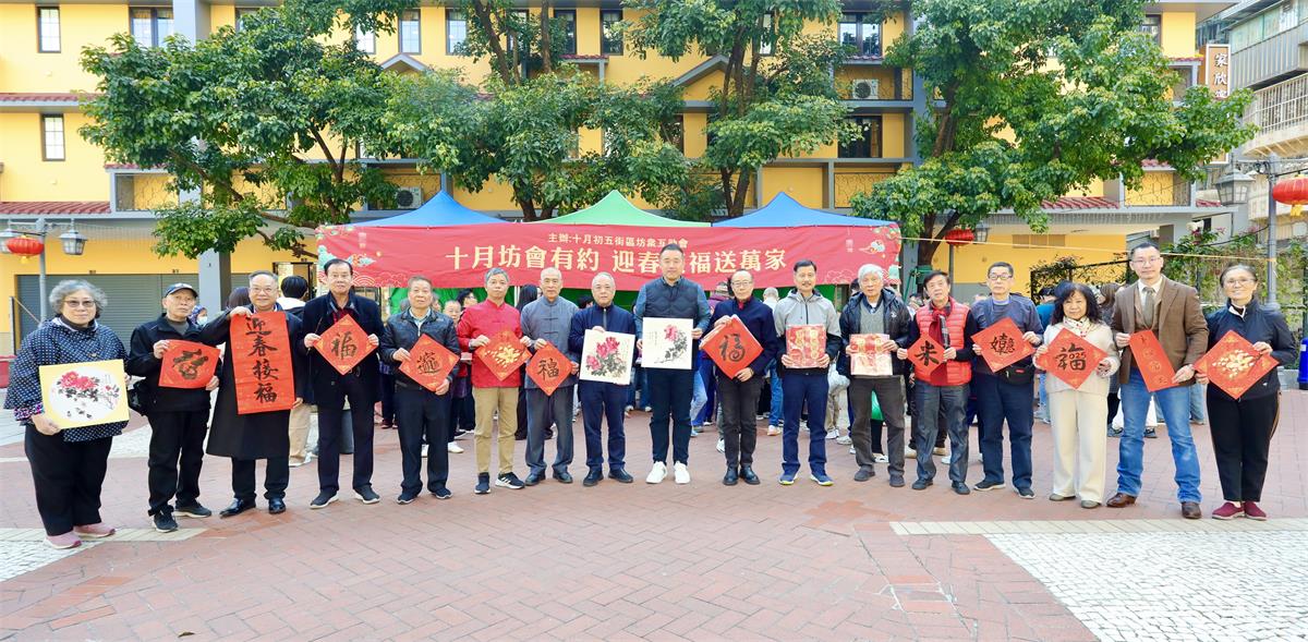【本報訊】十月初五街區坊眾互助會於今(11)日下午二時半假康公廟前地舉行“十月坊會有約,迎春接福送萬家”活動,特邀十位資深書法家駐場書寫揮春及對聯,並贈送給街坊、商戶及旅客,現場氣氛熱烈。藉此團結坊眾,宣揚中國農曆新年傳統文化,提前向坊眾送上新年祝福,期望新一年萬事如意。