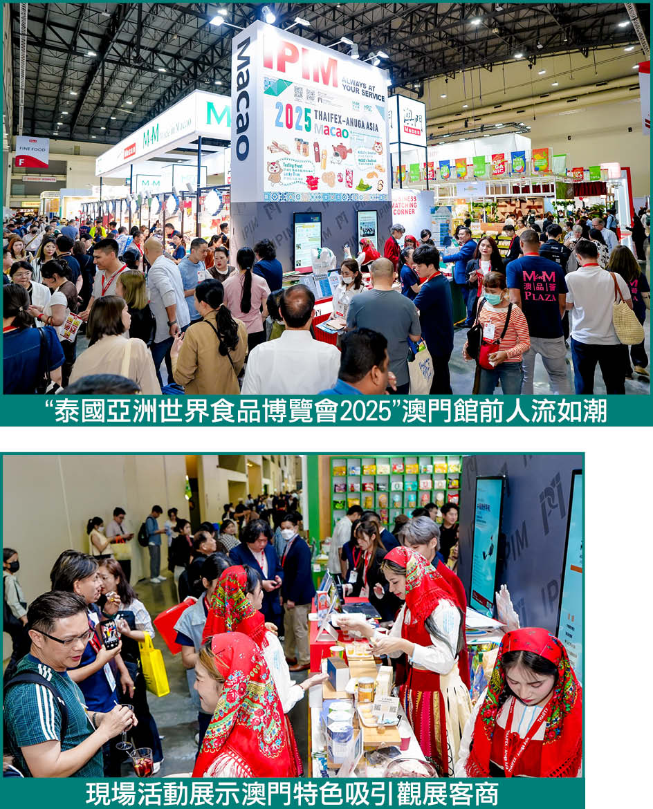 【本報訊】澳門特別行政區招商投資促進局(下稱:澳門招商局)聯同澳門廠商聯合會,攜手22家澳門企業近300款“澳門製造、澳門品牌”產品,一連5日亮相“泰國亞洲世界食品博覽會2025(THAIFEX - ANUGA ASIA2025)”。期間澳門企業與來自29個國家及地區的73名國際專業買家展示澳門產品特色及優勢,促成逾350場商業洽談,參展的澳門企業與東南亞、中國內地、歐洲、香港等國家及地區的企業達成初步合作意向。展現澳門產品的獨特魅力,也為澳門中小企“走出去”搭建有效平台,深化國際交流合作,提升澳門品牌在國際上的知名度。