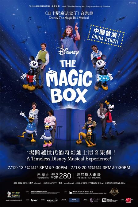 迪士尼全新音樂劇《迪士尼魔法盒子》將於7月12至13日及7月18至20日在威尼斯人劇場隆重上演10場精彩演出