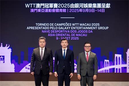 【本報訊】由澳門特別行政區政府體育局、WTT世界乒乓球職業大聯盟及銀河娛樂集團主辦、澳門乒乓總會協辦的“WTT澳門冠軍賽2025由銀河娛樂集團呈獻”將於9月9日至14日在澳門東亞運動會體育館舉行。一眾世界頂級乒乓球運動員將向市民和旅客展示精湛的球技,勢必上演連場激戰。