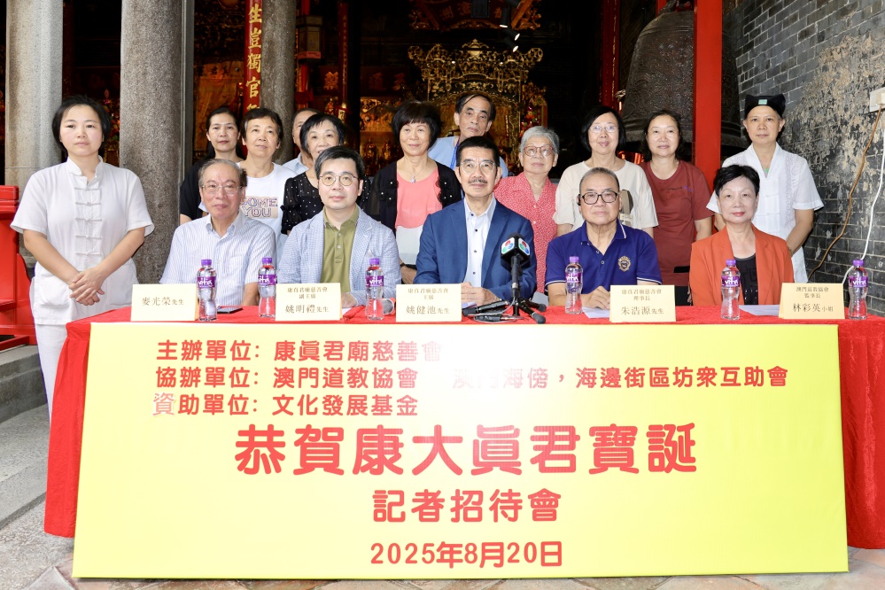 記者招待會於今(20)日下午假康真君廟舉行,康真君廟慈善會主席姚健池,副主席潘鈫亮、姚明禮,理事長朱浩源,秘書麥光榮,澳門道教協會監事長林彩英主持。