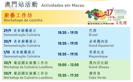 第十七屆中葡文化週系列活動多元豐富,誠摯邀請市民和遊客共襄盛舉,感受中葡文化魅力!欲了解更多詳情,請瀏覽文化週專題網站:https://semanacultural.forumchinaplp.org.mo。