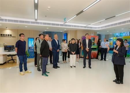 市政諮詢委員會委員及三區社區服務諮詢委員會委員等一行人,在工作人員帶領下,參觀慕拉士政府綜合服務中心的服務櫃檯、24小時自助服務中心、跨境自助服務專區、休息等候區、自助影印區、親子洗手間和哺乳室等設施設備,了解中心的日常運作及所提供的服務。