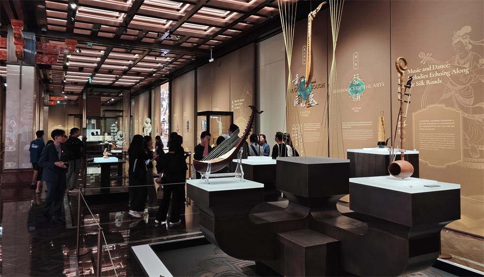 一是參展展品豐富精彩,不僅包含故宮博物院、中國國家博物館等內地近20家文博單位的藏品,更涵蓋來自敘利亞大馬士革國家博物館、日本平山郁夫絲綢之路美術館等境外文博機構珍品,後續還將加入葡萄牙、法國等境外文物,打造真正意義上的國際大展。二是更加聚焦絲路精神的現代表達,透過常書鴻、常沙娜等幾代學者的作品,展現80餘年薪火相傳的敦煌藝術守護事業;同時展示知名音樂家譚盾多年研究所復原的古絲路樂器,包括鳳首箜篌、五弦琵琶、反彈琵琶等,結合現代交響樂讓“絲路之音”重煥生機。三是創新推出博物館“夜遊”活動,以劇目為文化載體,將絲路文明故事串聯,透過現場人物動態演繹結合文物靜態展示,為觀眾提供沉浸式跨越時空的文化體驗。