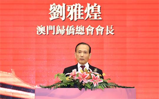 劉雅煌致辭指出,在歷任會長的帶領下,僑總錨定打造成為支持澳門、融入國家,與世界聯動增速發展互聯互通的澳門最具規模僑界社團,新一屆僑總致力團結來自65個國家和地區的超過十萬歸僑僑眷的澳門居民,與全球200多個僑團保持緊密聯繫,並進一步發揮與海外廣泛聯繫的天然優勢,每年舉辦“一帶一路”以及“僑青高峰論壇”等大小活動兩百多場,在海內外媒體上發表文章超百篇,用大量的事實向世界講好“一國兩制”成功實踐的中國澳門新故事。