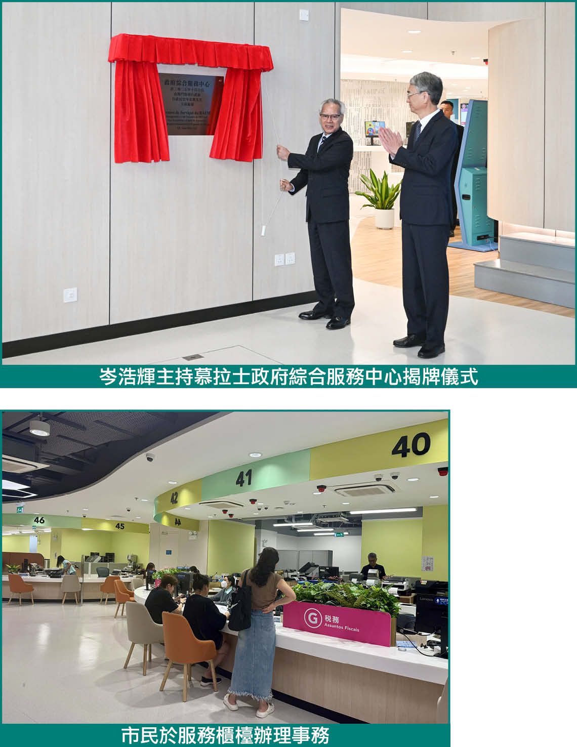 【本報訊】位於慕拉士大馬路望信樓地下的政府綜合服務中心於6日正式啟用,為市民提供24個公共部門逾300項服務,並設政府24小時自助服務中心及跨境自助服務專區,進一步便利市民、促進跨境服務聯通。