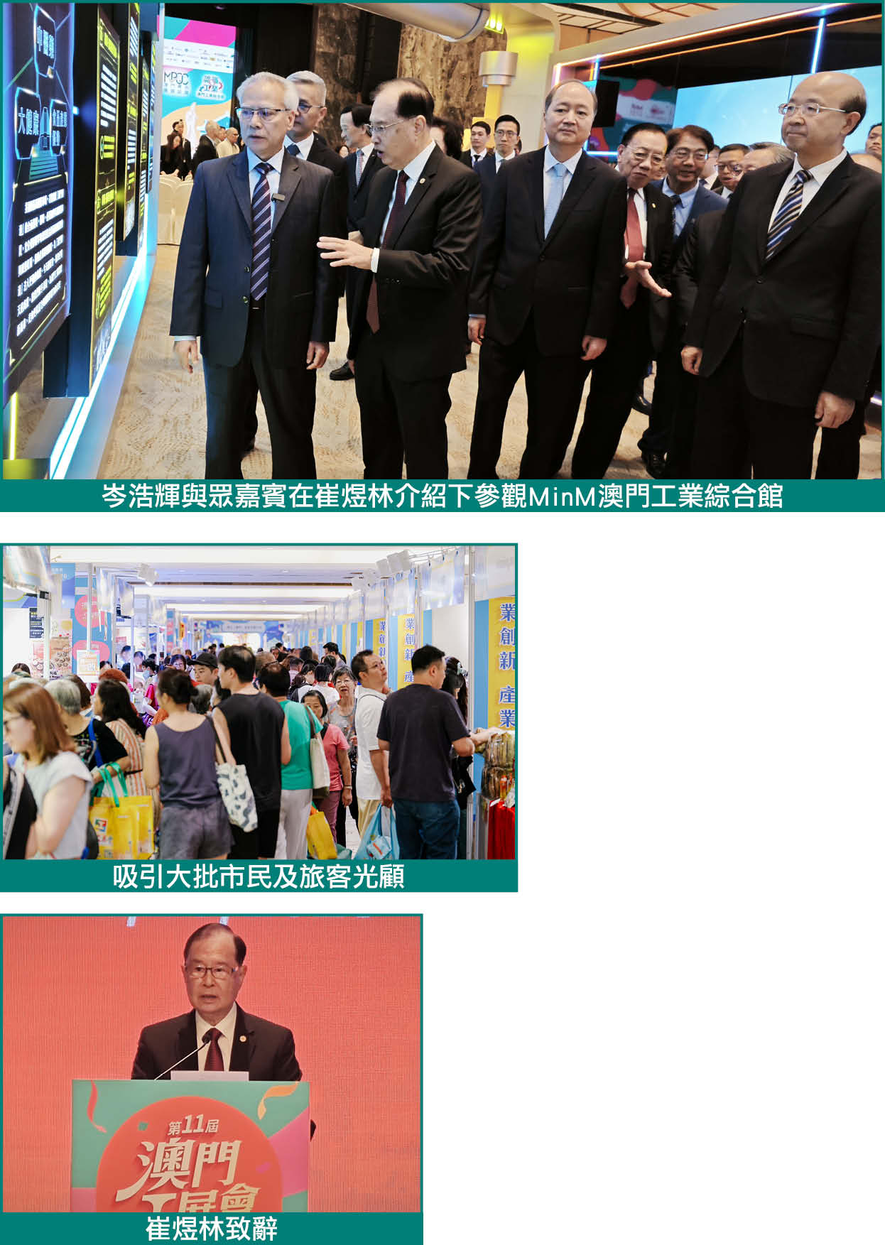 【本報訊】由澳門廠商聯合會一連四天在漁人碼頭會展中心舉辦主辦的“第十一屆澳門工展會”(下稱“工展會”),於 10月5日圓滿落幕。本屆工展會參展商逾130家,設七大展區,總面積約5,260平方米,涵蓋時尚、飲食、金融、電器及日用等澳門相關品牌、製造及代理的產品,特設的“MinM澳門工業综合館”作為展會亮點,旨在以展示本澳工業的發展和資訊,推動其可持續發展。同場還舉辦親子、表演及消費獎賞和抽獎等活動熱鬧氣氛。