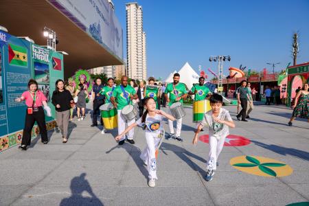 表演區域匯聚了8支來自葡語系國家及地區的專業表演團隊和5個琴澳學界團體,呈現了包括葡國傳統土風舞、巴西熱舞、樂隊演唱等精彩節目。來自澳門的學生團體與葡語系國家藝術家同台獻藝,展現了琴澳兩地文化交融的獨特魅力,持續點燃現場氣氛。