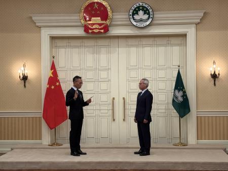 【本報訊】行政長官岑浩輝今(16)日上午在政府總部主持行政法務司司長黃少澤、保安司司長陳子勁、檢察院檢察長唐曉峰的宣誓就職儀式。